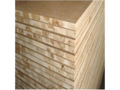 以切割成條的原木拼接成芯,拼接后的木板兩面各覆蓋一層中板和表板,再經(jīng)冷、熱壓機膠壓后制成。